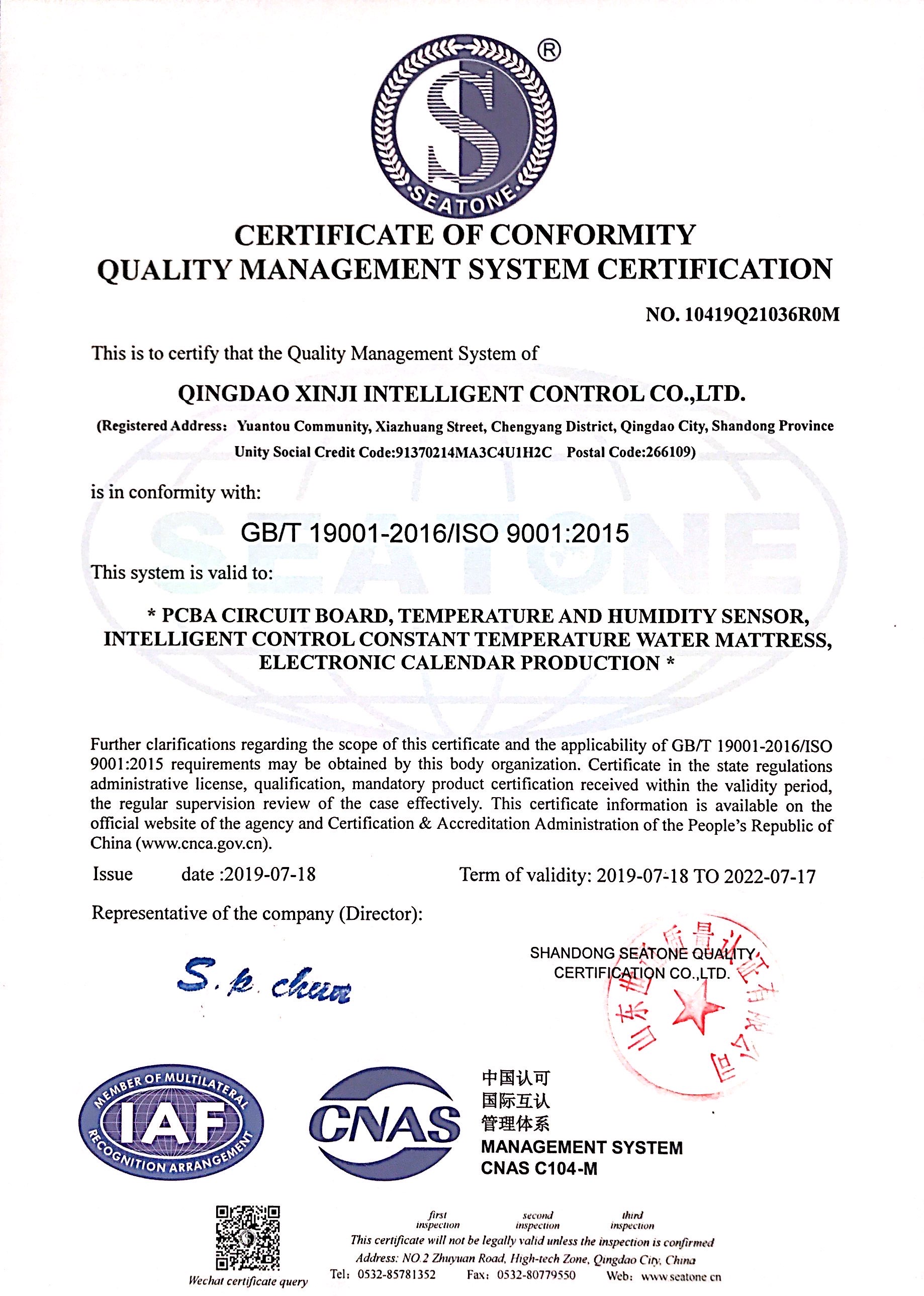 ISO 9001 quality system certification